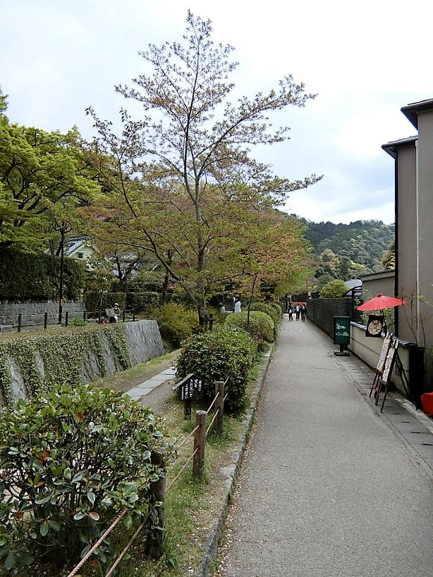 哲学の道はずっとこんな感じの石畳でゴツゴツして歩きづらい。